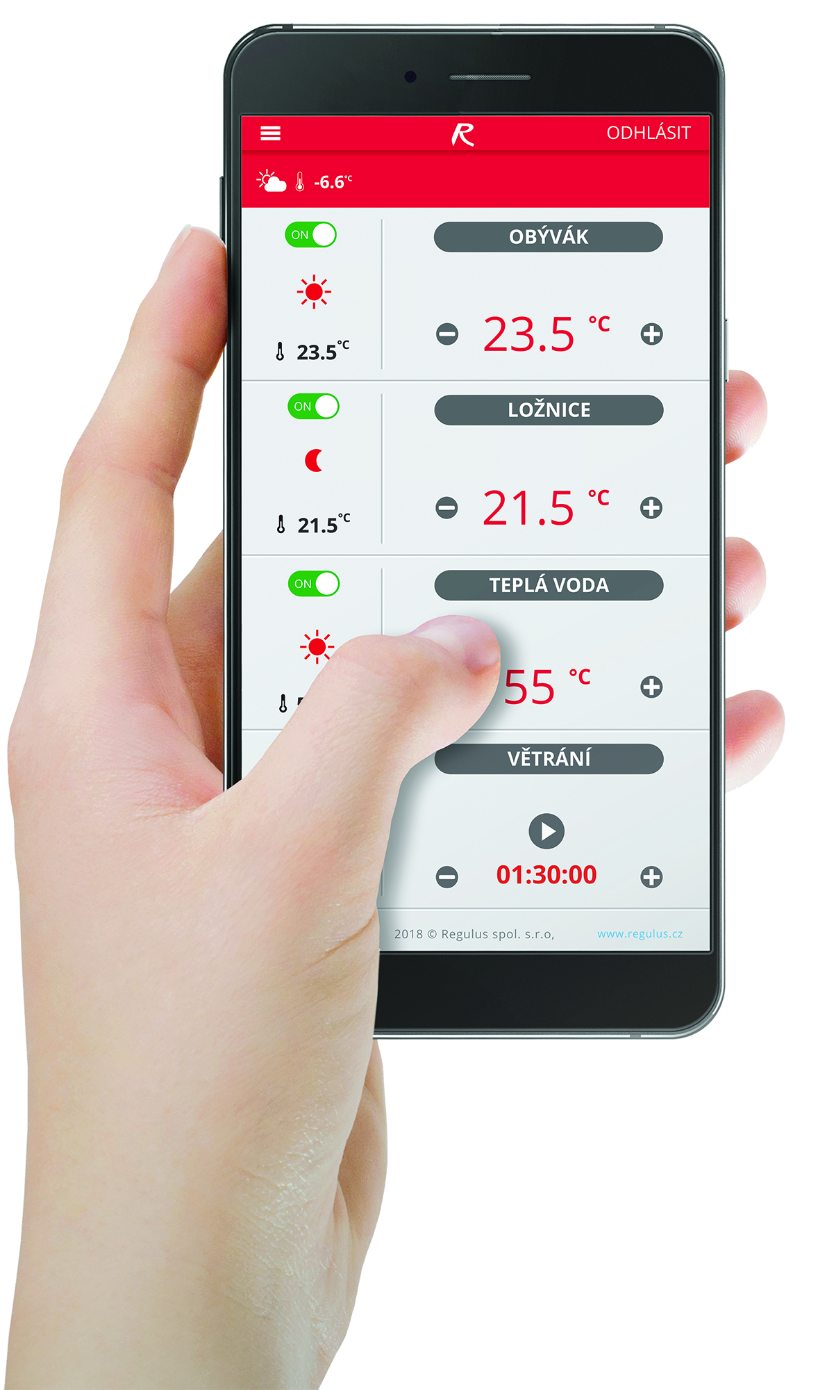 Ganz einfach mit der Regulus IR Client App, die Ihnen den Zugriff auf Ihren Regulus IR-Regler über Ihr Mobiltelefon ermöglicht. In einzelnen Kacheln können Sie ganz einfach die gewünschte Raumtemperatur ändern oder die Lüftungsintensität im Haus steuern. Sie können auch die gewünschte Wassertemperatur ändern oder die sofortige Warmwasserzirkulation starten.