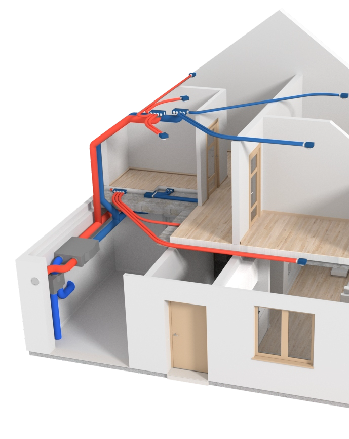 The basic box 8x75/125 mm connects to the ducts running from the HRV unit. It then divides the air flow into a larger number of branches with a diameter of 75 mm. The basic version has 8 outlets, unnecessary outlets can be plugged with a blanking plug - 2 pcs are included in the package. | |