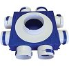 Along with the boxes, we are also adding an adapter for crossing up to 3 branches of PE ducts of 75 mm diam. The adapters are placed with the central lowered part across each other and the individual branches are connected to their ends. |
