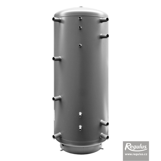 Thermal Store designed for storing and subsequent distribution of thermal energy from solid-fuel boilers, heat pumps or other heat sources. The tank has 9 G 6/4" connections to connect heat sources and loads or insert electric heating elements.
