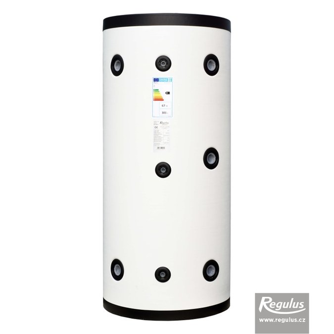 Floor standing tank, 301 l, non-detachable insulation, no heat exchanger, intended for storing heat/cold. Diam. 650 mm incl. insulation, 1475 mm high.